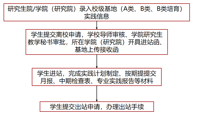 全日制硕士专业学位研究生校级基地(A类、B类、B类培育)专业实践流程