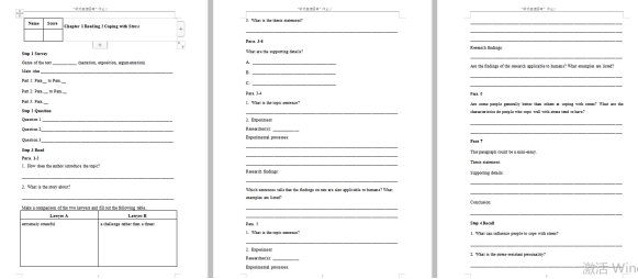 根据教学内容,遵循由易到难的梯度分布原则和SQ3R的阅读理念设计导读作业。包含提问、略读、跳读、细读、回忆和复习等技能针对性练习设计。云班课设定作业时限,学生水到渠成的完成课前热身和预习。